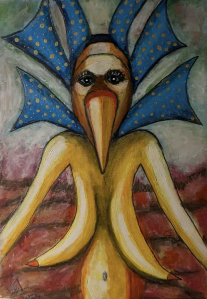 Jeg arbejder med tørpastel, farveblyanter og akrylmaling på kvalitetspapir.